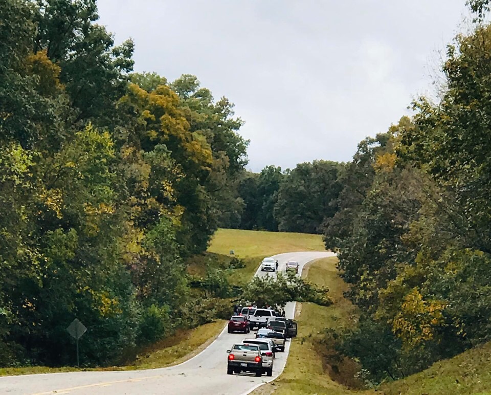 After viewing the film In the visitors center we exited the building to find that the rain and wind had picked up a little. We decided to get an early lunch at the Catfish Motel which was just around the corner. Hopefully the storm would blow over while we were eating and then we could tour the Shiloh battlefield. On our short drive to the restaurant we encountered a downed tree but it was passable on one side. We often travel in heavily wooded National Parks and we’ve learned that trees sometimes fall in the road. So we didn’t think too much about this one. When we got to the restaurant their power was out. The wind and rain were steadily increasing so we decided to make our way out of the Park and return on a clearer day.